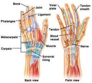 The wrist joint is a complex joint which connects the forearm to the hand, allowing a wide range of movement. The hand has several muscles. More than 30 individual several muscles in the forearm control the pivoting of the radius around the ulna that rotates the wrist and hand. The hand and wrist are made up of many different bones, muscles and ligaments that enable a wide range of movements.